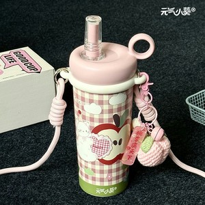 粉圆环保温杯/大号【700ML】-粉格大苹果猫+背带