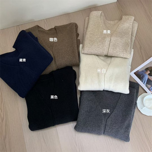 韩版宽松V领毛衣外套女秋冬新款简约慵懒风厚实软糯针织开衫上衣