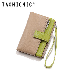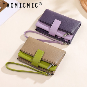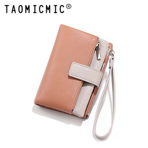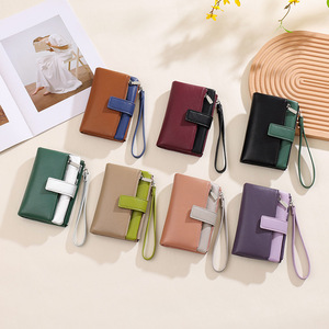 跨境高级感两折手拎女士钱包ins短款拼接日式大容量卡包钱夹