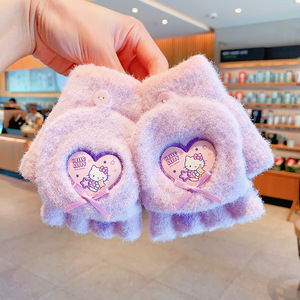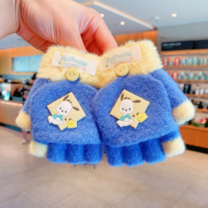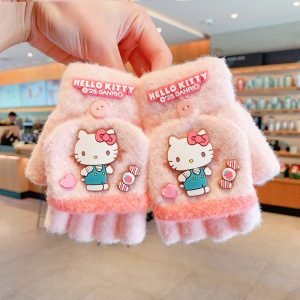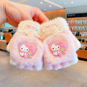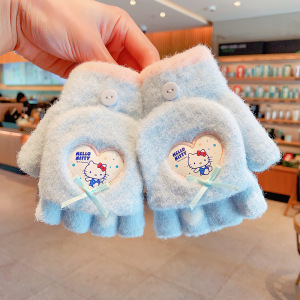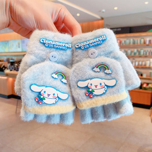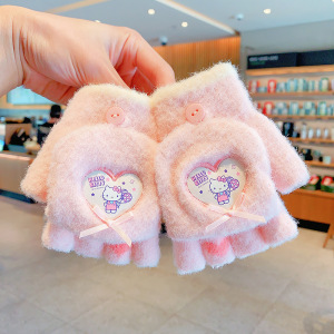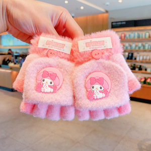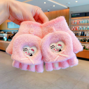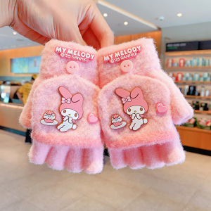 三丽鸥正版儿童手套冬季半指翻盖保暖女童卡通小学生写字露指分指