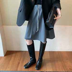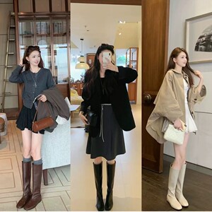 葡萄妈studiolee 同款增高4cm~ 百搭方圆头平底内增高中筒靴女