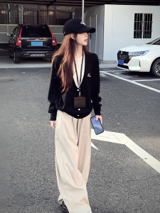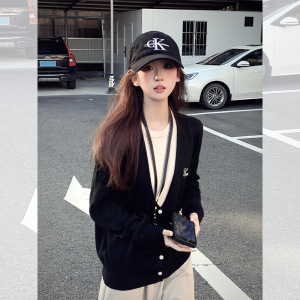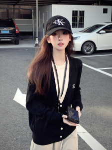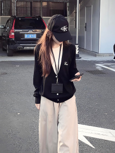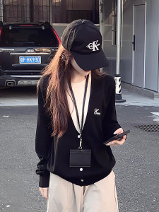 学院风黑色圆领假两件套头毛衣女秋冬外穿奶fufu宽松软糯针织上衣