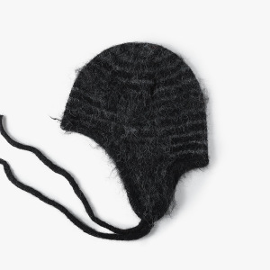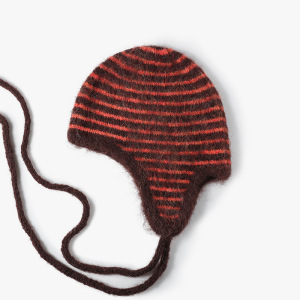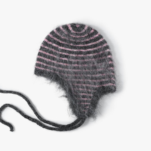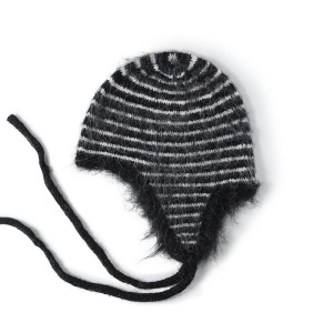 韩国ins毛茸茸条纹绑带护耳毛线帽女25秋冬新款保暖针织冷帽批发