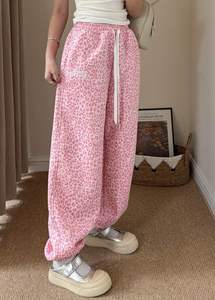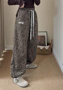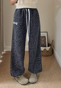 张元英同款甜酷豹纹字母印花束脚卫裤女秋季新款宽松休闲显瘦长裤