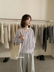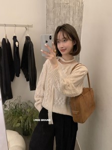 IMISS 秋冬韩系麻花柔软宽松显瘦长袖保暖毛衣女H991106(配飘带)