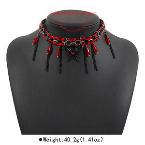 N12934复古个性y2k辣妹红色豹纹皮质链条流苏锁骨链蝴蝶吊坠项链