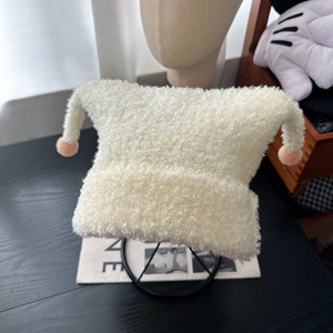 白色搞怪帽子女2025新款秋冬季潮流时尚保暖显脸小防寒毛线帽子
