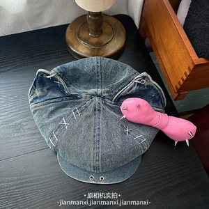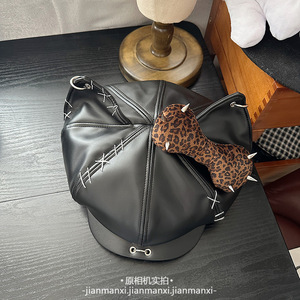 甜酷铆钉蝴蝶结八角帽女y2k亚文化猫耳朵贝雷帽暗黑辣妹画家帽子