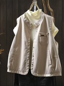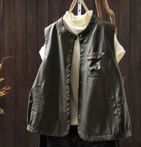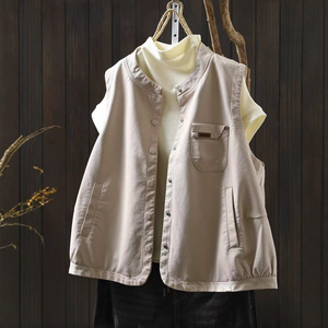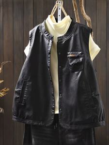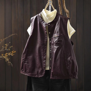 秋季新款 PU棉复古小立领别致叠穿无袖马夹背心81623