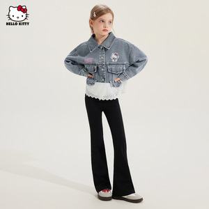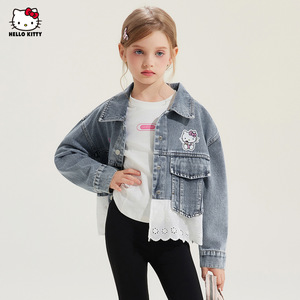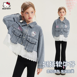 HelloKitty凯蒂猫女童秋季牛仔外套2025镂空花边拼接韩系复古外衣