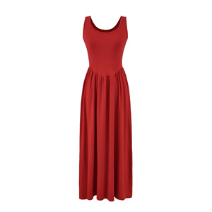 气质修身收腰工字背心高级感连衣裙女秋法式复古吊带红色无袖长裙