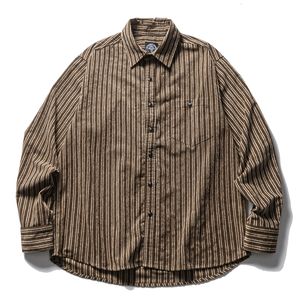 日系复古阿美咔叽条纹长袖衬衫男女宽松vintage文艺青年工装衬衣