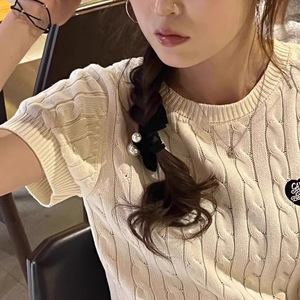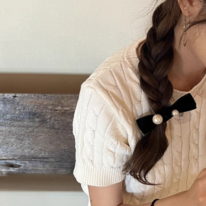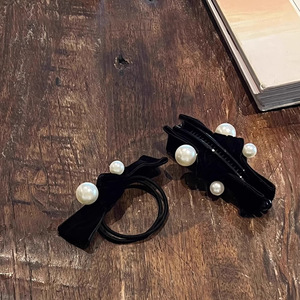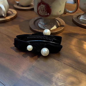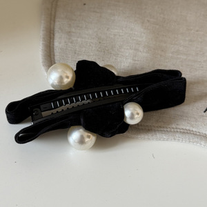 韩系温柔丝绒仿珍珠点缀香蕉夹头绳新款扎马尾竖夹一字夹发饰头饰