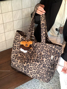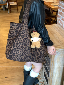 2025秋冬新款大容量复古豹纹托特包女款时尚百搭通勤单肩包通勤包