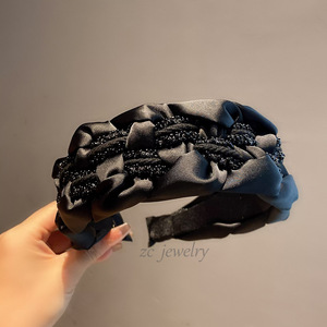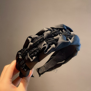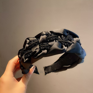 黑色高级感轻奢米珠麻花宽边发箍女时尚气质高颅顶外出新款发卡