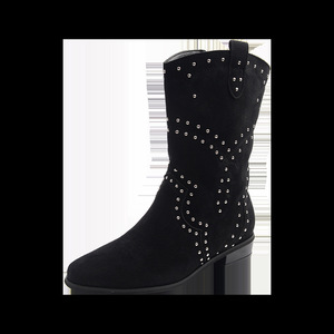 2025秋季新款时装靴女鞋低跟中筒靴套筒靴子冬季绒面铆钉气质短靴