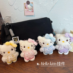 新款蕾丝KT钥匙扣毛绒公仔挂件HelloKitty钥匙链挂饰包包挂件礼物