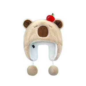 可爱卡皮巴拉毛绒帽女秋冬季显脸小套头帽防寒保暖护耳雷锋帽子潮