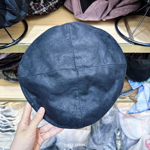 批发韩国2025年秋冬新款小香风贝雷帽女黑色复古丝绒大头围蓓蕾帽