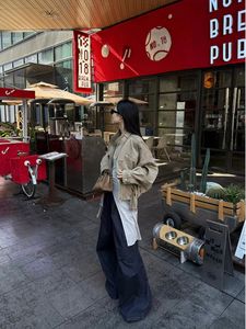 25春秋新款感卡其色工装巴恩风外套女2025新款立领机车显瘦夹克