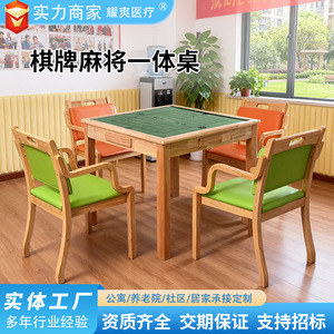 家用棋牌桌1桌4椅养老院多功能胡桃色中式正方形实木麻将桌象棋桌