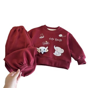 儿童两种色立体玩偶长袖套装潮童时髦运动服俩件装男女童圆领百搭
