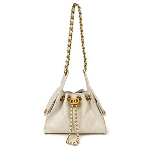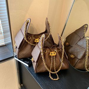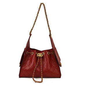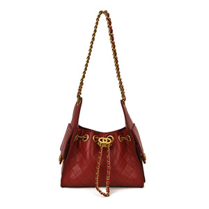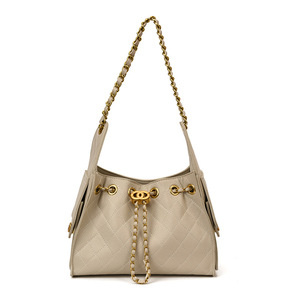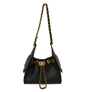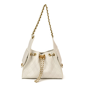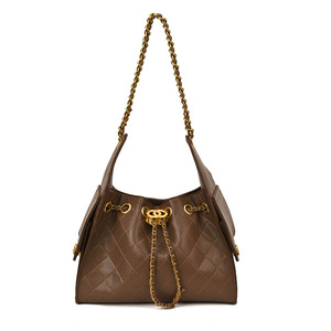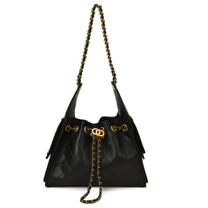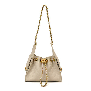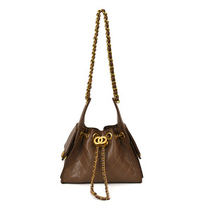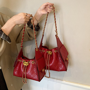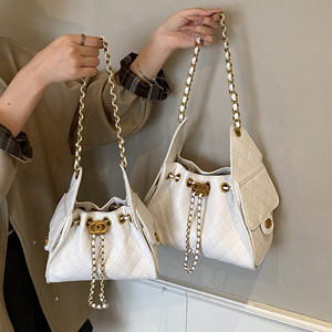 新款抽绳水桶腋下手提嬉皮女菱格高级质感小香风链条女士包