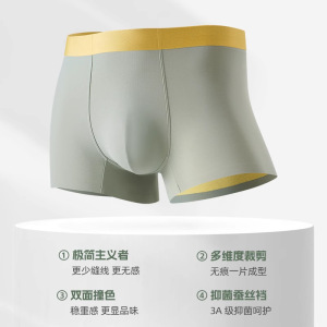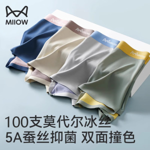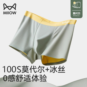 MiiOW/猫人男士内裤100支兰精莫代尔无痕平角裤秋冬款四角短裤头