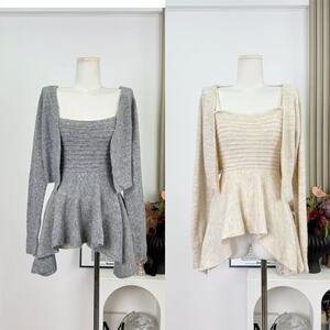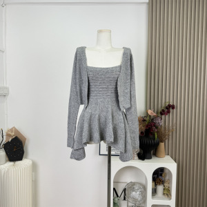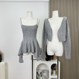 2025实拍秋季短款针织外搭开衫长袖外套女+吊带针织短裙