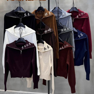 大翻领拉链毛衣春秋冬外套短款针织洋气开衫高腰上衣网红爆款叠穿