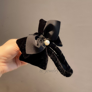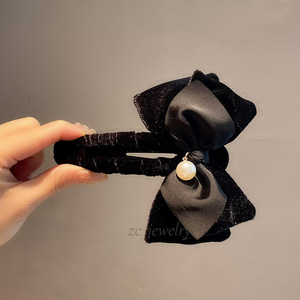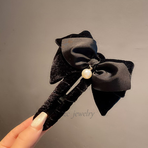 蝴蝶结发夹秋冬新款黑色丝绒绕布懒人夹女时尚轻奢后脑勺盘发发卡