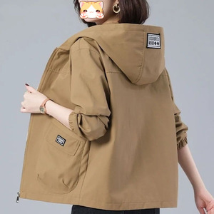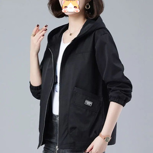 时尚百搭2025连帽妈妈单外套女春秋季新款休闲宽松气质减龄夹克衫
