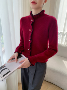 新款木耳边软糯baby山羊绒女套头纯色针织修身毛衣优雅显瘦上衣
