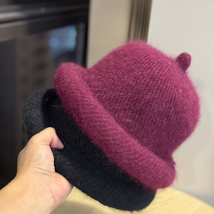 新款秋冬针织地主帽日系毛线瓜皮帽男女潮个性百搭雅痞圆顶奶嘴帽