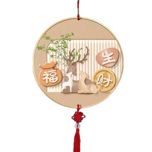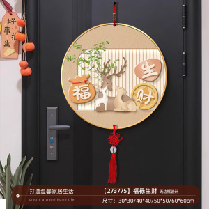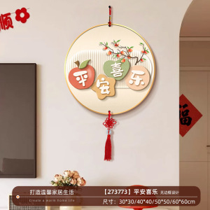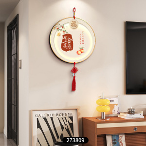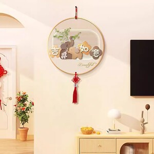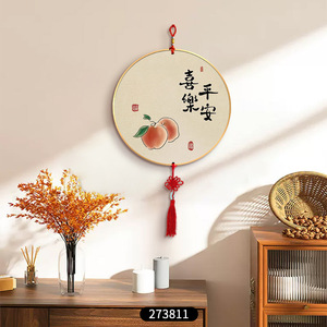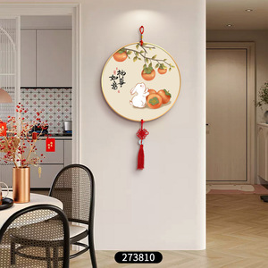 柿柿如意电视背景墙挂画圆形中国结挂饰新款客厅装饰画新中式挂件