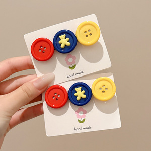 可爱撞色纽扣小熊发夹女2025新款高级感侧边刘海鸭嘴夹不伤发发卡