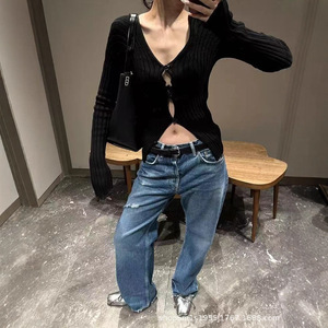 2025早秋新款纯欲风胸前镂空修身V领长袖毛衣开衫