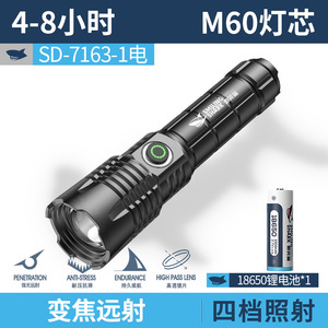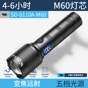 SD-8110A变焦手电-黑色【M60灯珠;内置电池1800MAH】