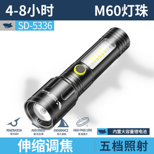 SD-5336A变焦带侧灯手电【内置电池1200MAH】