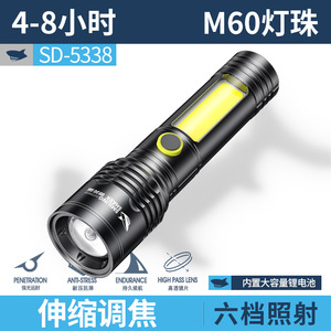 SD-5338A变焦带侧灯手电【内置电池1200MAH】