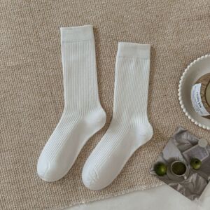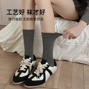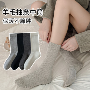 羊毛袜子女秋冬季中筒袜无骨吸汗保暖白色堆堆袜冬天韩版纯色长袜