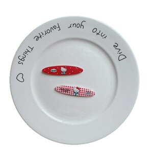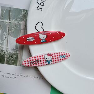 新款复古红色系格纹Kitty猫树脂diy发夹头饰手工冰箱贴片配件材料