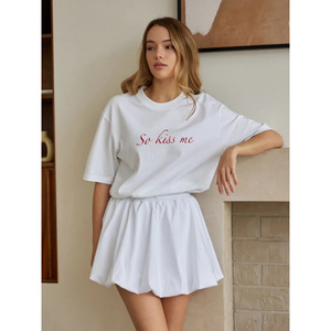 夏季新款美式休闲简约甜美少女心文艺字母印花宽松舒适慵懒风上衣