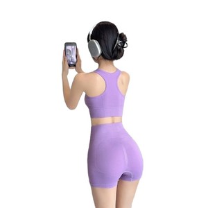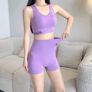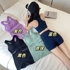 跨界运动套装女瑜伽舞蹈跑步健身印花带胸垫显瘦收腹提臀两套装