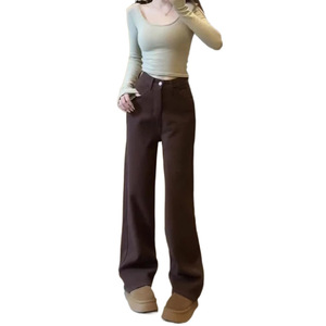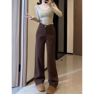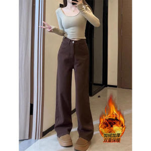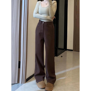 美拉德棕色直筒牛仔裤女秋冬季加绒加厚宽松显瘦垂感大码阔腿长裤