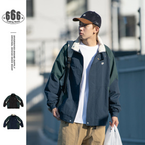 WANLEGETU日系复古citypop学院风立领夹克男士春秋运动外套J2017