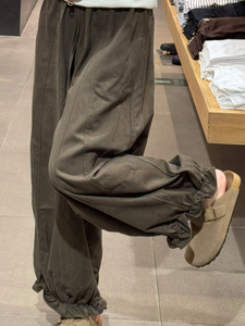 咖色九分花苞休闲裤女秋季大码胖mm宽松显瘦小个子垂感阔腿气球裤