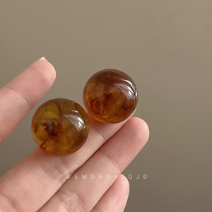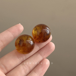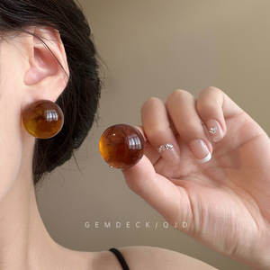 复古港风琥珀色圆球耳钉女美拉德个性独特设计感耳环夸张耳饰秋冬