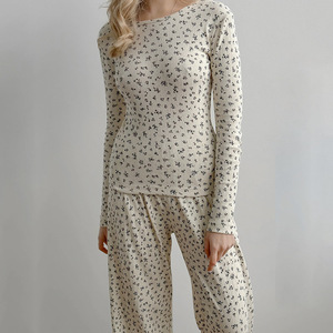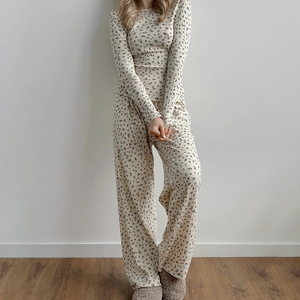 2025欧米尔针织提花印花睡衣女秋季新款舒适柔软长袖长裤跨境家居