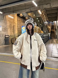 美式复古拼色棒球服拉链夹克春季新款宽松男女国潮刺绣外套